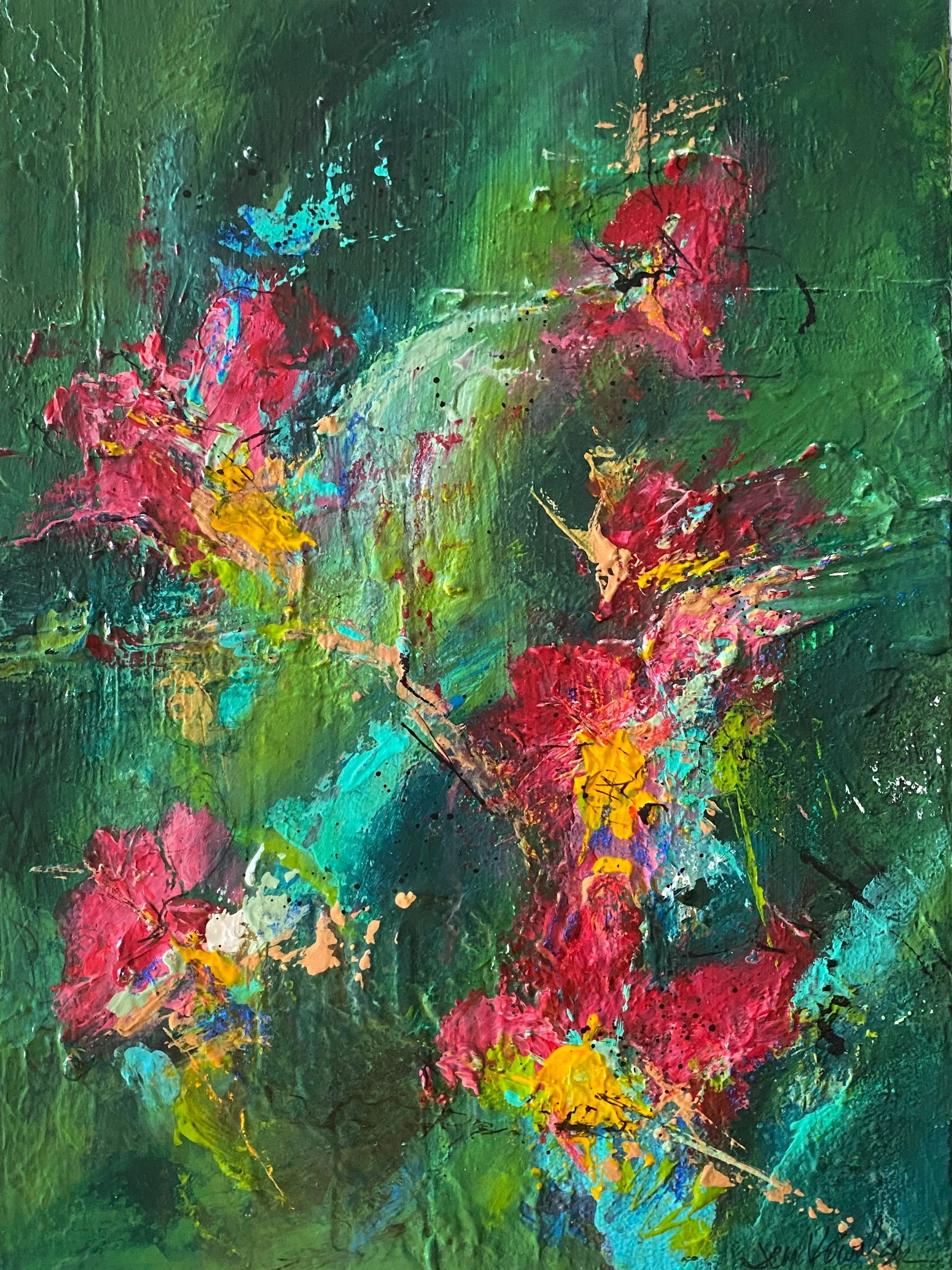 "Blossoming" - acrylic on canvas, unframed. Size: 10" x 20" x 1.5"